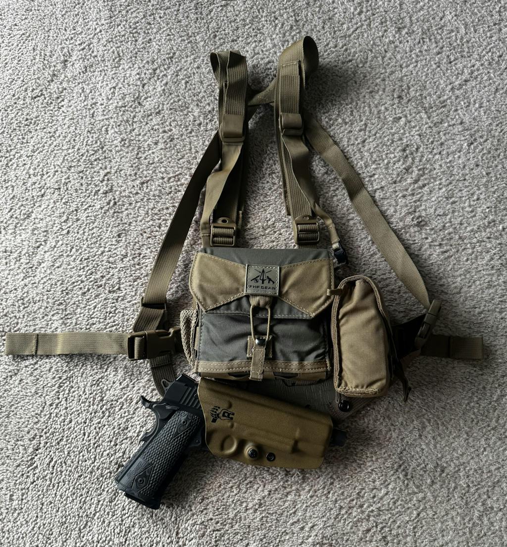 In 2017, we introduced the PRO-M (M stands for MOLLE). This version of the PRO harness is equipped with a Laminated MOLLE panel on the underside of the pouch, allowing for quick and easy accessory or gun holster attachment.