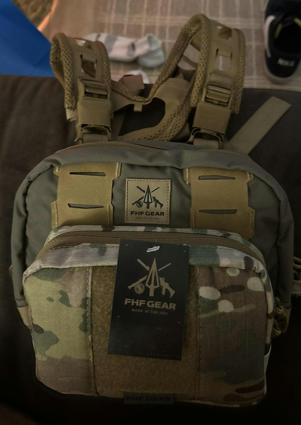 The E-4 Pouch is a larger multipurpose storage option- with more uses than we can count. Backed with a double column of laser-cut MOLLE, the E-4 pouch attaches to the front of the FHF Gear Chest Rig, most hip belts, or any other MOLLE compatible gear. The main compartment of the E-4 is perfect for storing larger items, such as battery packs, larger fly boxes, calls, beanies, gloves, neck gaiters, snacks, etc. The dual interior pockets provide organization and accessibility of small items such as snacks or basic first aid needs, and loop panels (inside and out) provide versatile placement of velcro-backed inserts, such as our ammo holders, or diaphragm call organizer.